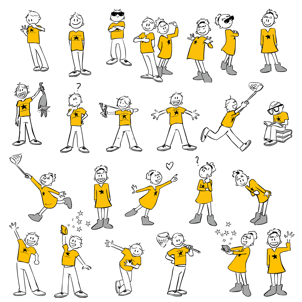 Van de mascottes van het marktresearchbureau Winkle heb ik vele versies getekend. De "Winkle-boy & girl" werden gebruikt bij zo'n beetje alle uitingen van het bedrijf: op de website, bij vragenlijsten, rapporten, etc.